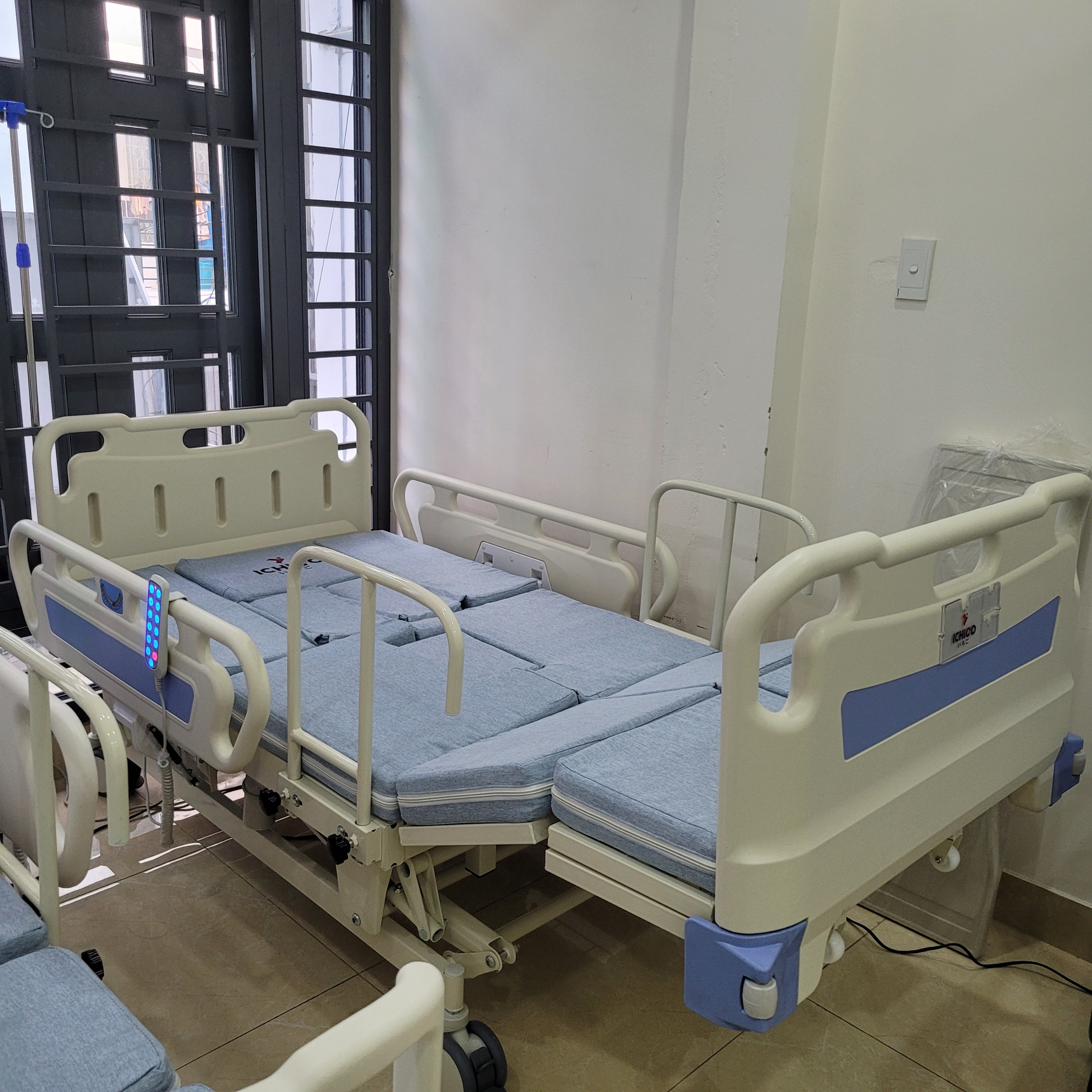 1- Chức năng đặc biệt của giường IG-HB07E new là chức năng nâng toàn bộ thân giường từ 45m-75cm với 5 motor hoàn toàn khác biệt các sản phẩm giường y tế khác đang có mặt trên thị trường.