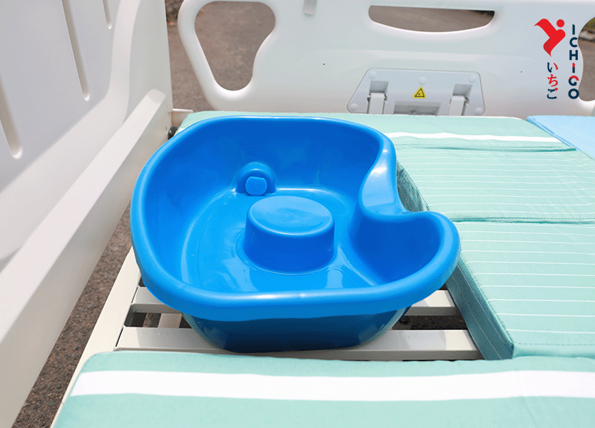 4- Chức năng vệ sinh tại chổ của giường: Chỉ cần ấn vào hình vẻ bô vệ sinh ở trên chiếc điều khiển của giường thì chức năng bô vệ sinh của giường sẽ được kích hoạt ngay lập tức, cụ thể miếng nệm được thiết kế ngay ở lỗ bô của giường sẽ tự động tụt xuống và đồng thời chiếc bô vệ sinh đang cờ sẵn ở dưới sẽ di chuyển cùng với giá đỡ vào ngay đúng lỗ bô của giúp để giúp người bệnh dễ dàng đi vệ sinh ngay tại giường.